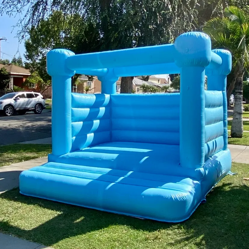 The Blue Modern Bounce House is perfect for smaller events and celebrations! This trendy, stylish 10x12 ft inflatable holds up to 6-7 kids depending on their size and weight. The beautiful lake blue color adds the perfect aesthetic touch to any party.
