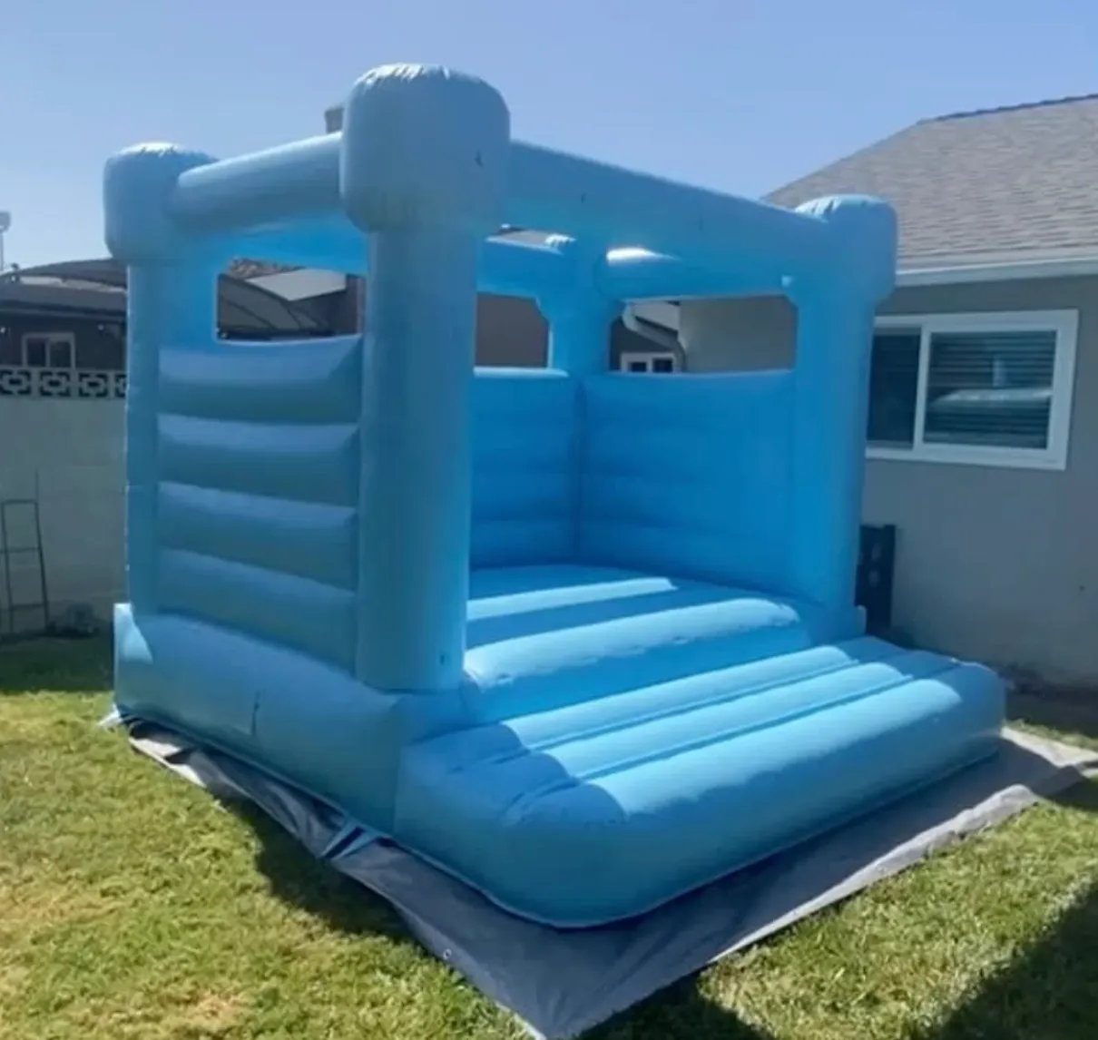 The Blue Modern Bounce House is perfect for smaller events and celebrations! This trendy, stylish 10x10 ft inflatable holds up to 6-7 kids depending on their size and weight. The beautiful lake blue color adds the perfect aesthetic touch to any party.