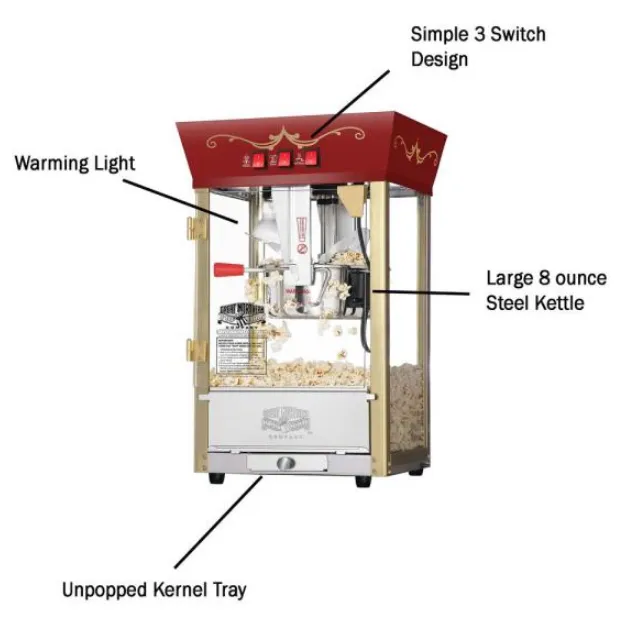 β’ Built-in Warmer Light to keep popcorn fresh & toasty