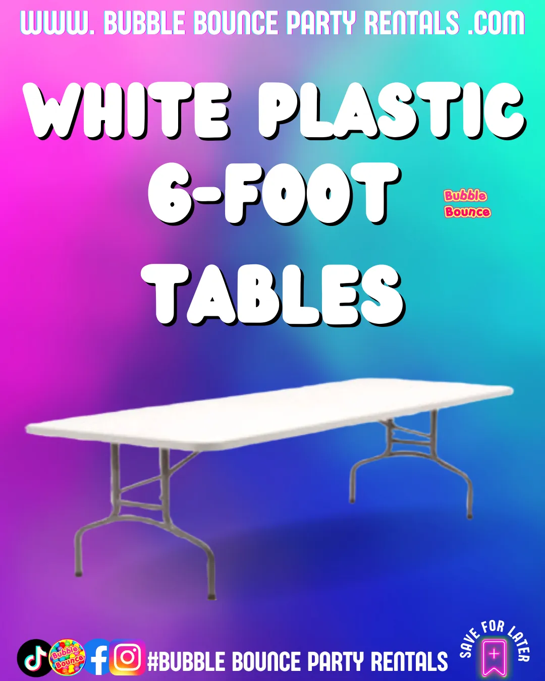 6 Plastic White Chairs + 1 Six Foot Rectangular Table